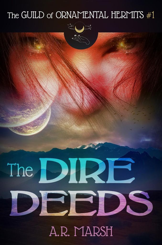 ‘A. R. Marsh’s The Dire Deeds (The Guild of Ornamental Hermits Book 1) is jam-packed with gloriously spectral, flamboyantly festive rainbow-hued, unabashedly queer characters; penned with unquestionable verve, a thoroughly captivating style, and unquestionable panache; woven into a magical, metaphysical, metaphorical, and meta-fictional epic narrative, this is a book to be loved, written by someone who knows what love is–and how important that is for everyone right now.” Goodreads 5-Star review