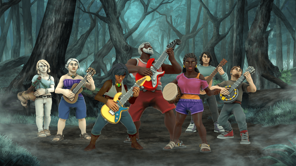 Hermitville has its own community band, The Incredible Unstrung Band. The band usually consists of eight multi-instrumentalists, though sometimes additional musicians or dancers perform with them. The band’s playlist is eclectic, consisting of both original songs and covers from a variety of musical genres: blues, neo-vaudeville, classic rock, 1960’s pop, punk, psychedelia, world music, and more. The songs covered may be less well-known, such as Circus Contraption’s Wicked Fascinations and Susheela Raman’s Love Trap (both played during the Teatro Occulto performance at Hermitville, Pahoa), or they may be slightly silly, such as The Monkee’s Look Out, Here Comes Tomorrow (re-interpreted as an early polyamory angst song), with Tomma Bedlam as a new lead singer for the band during their first Eugene, Oregon gig.