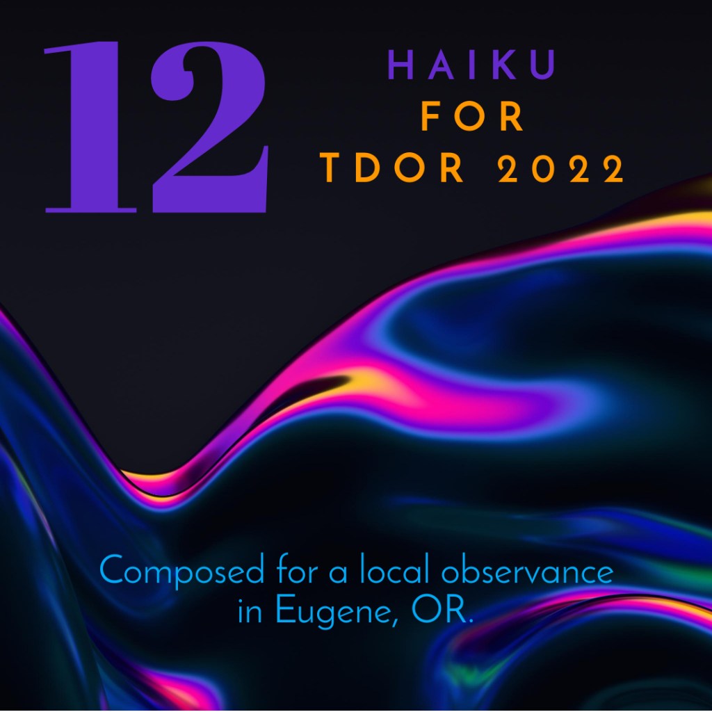 Here is a video of my participation at this Unitarian Universalist Church of Eugene service on TDOR, 2022.